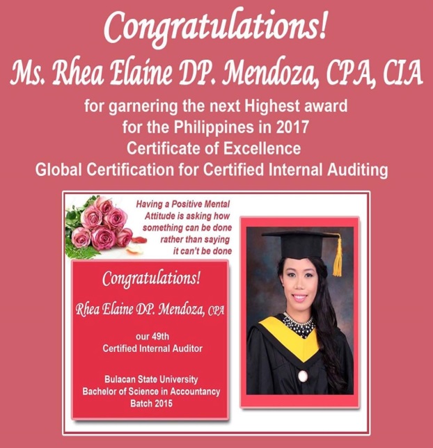 Our candidates our guided by a team of mentors who not only assist candidates to pass the examinations but also expose them to leading internal audit practices and global standards. Our distinguished team of mentors is composed of an impressive mix of renowned trainers, topnotchers, experience internal auditors, academic practitioners, and industry expert.